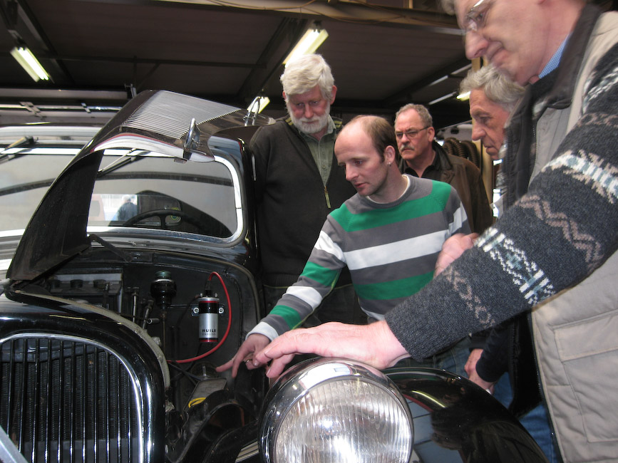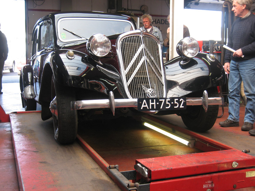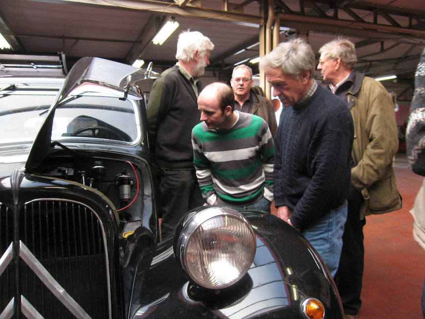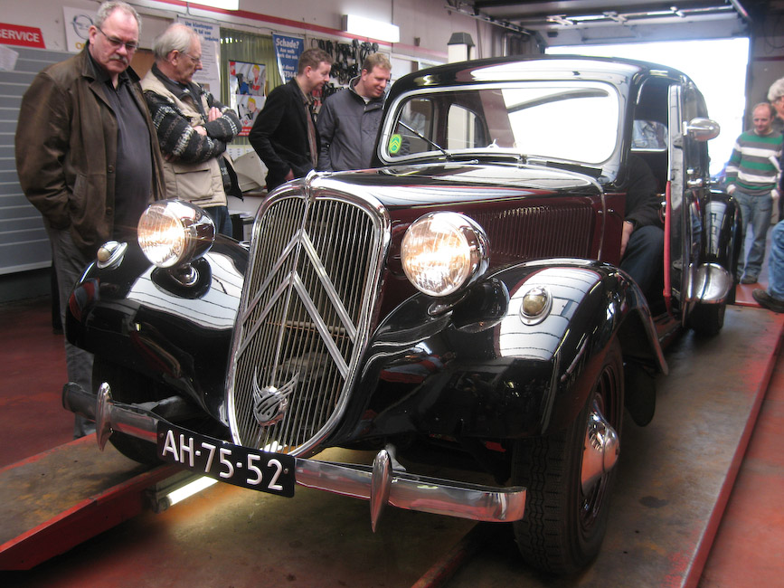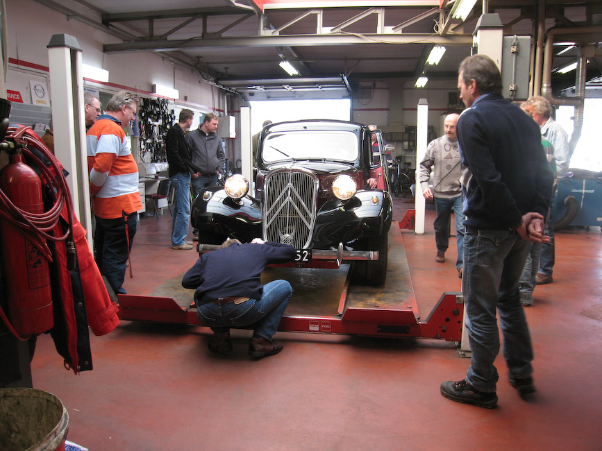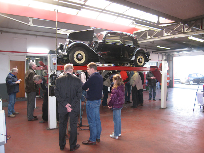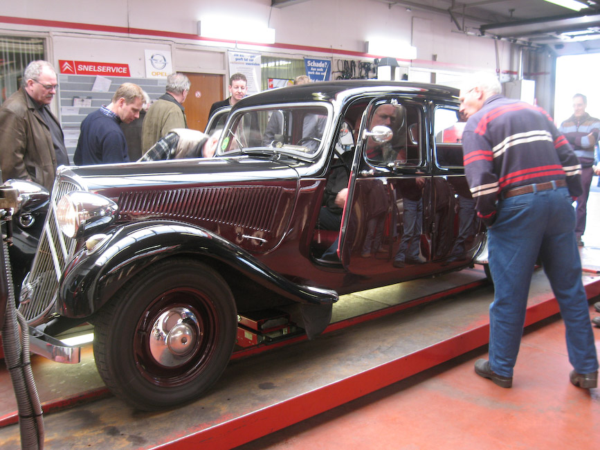 Tegen de 25 leden verwelkomd met koffie en koek door garage Veldma Citroën in Groningen. Een brug was voor ons vrij gemaakt en zodoende konden we ons uitleven op de Tractions die bij wijze van demonstratie werden gekeurd.