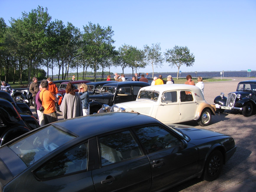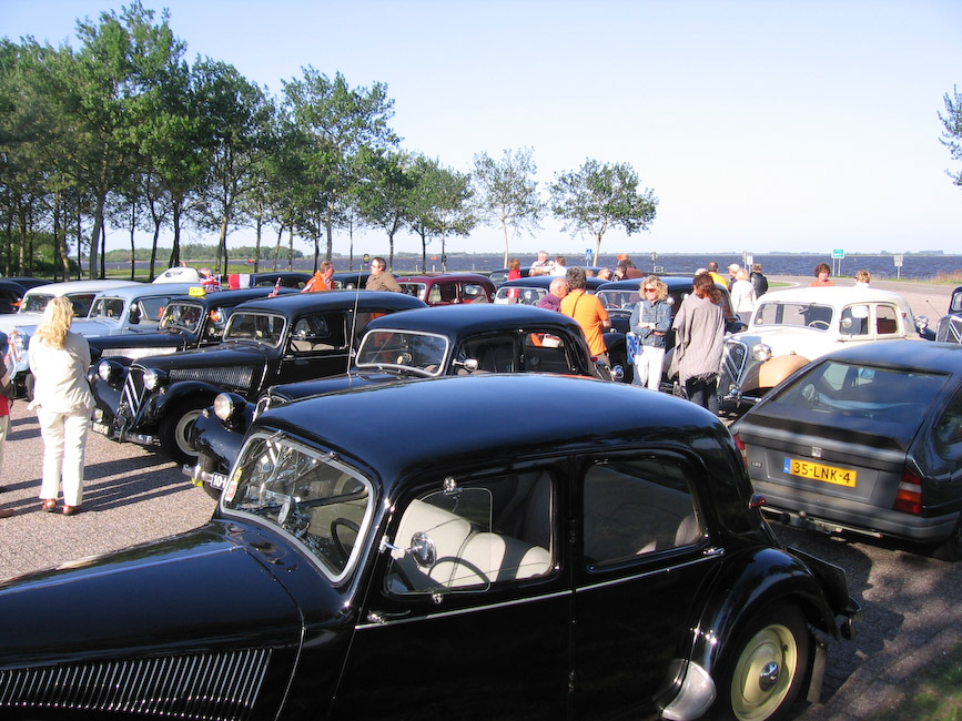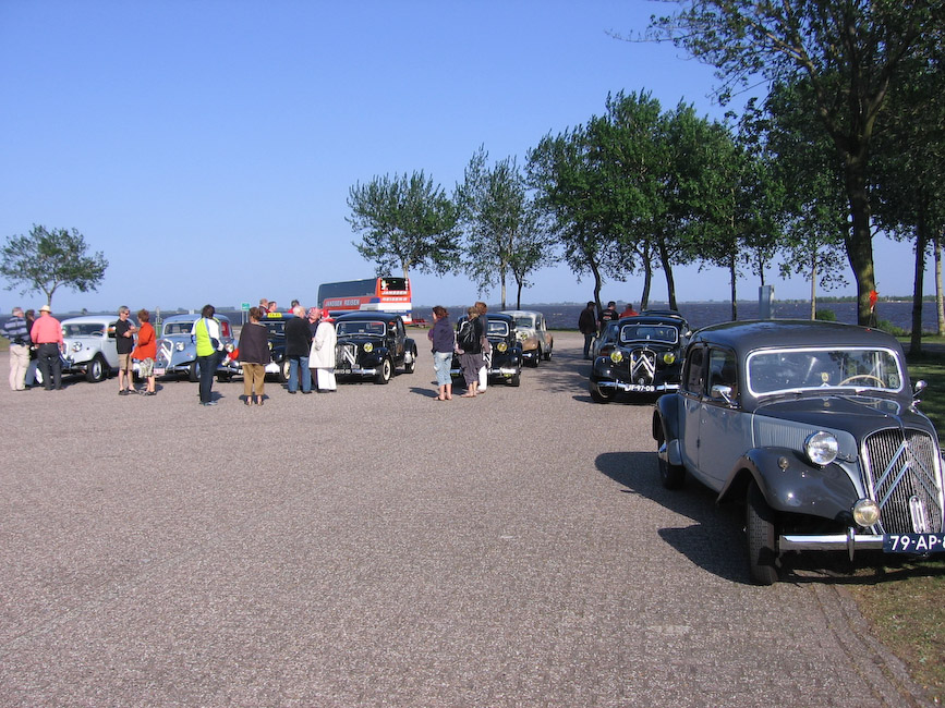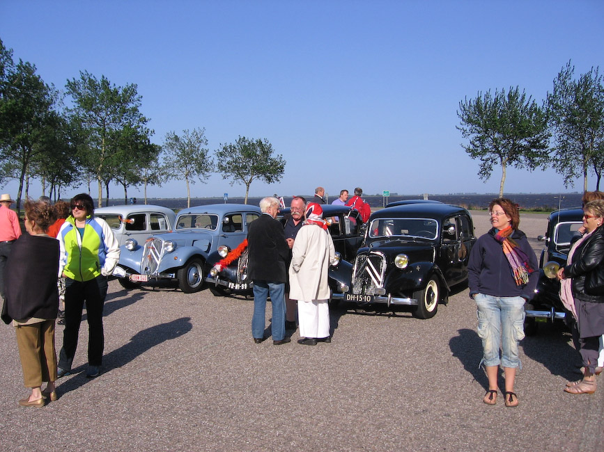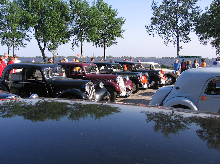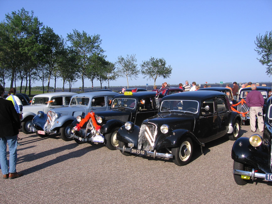 De Traction Owner Club (TOC), onze Britse zusterclub, was van 29 april tot en met 2 mei in Nederland om ons land te verkennen. Ton van Leeuwen en Arnoud Alderlieste hadden een mooie rit uitgezet waarin natuurlijk alle typisch Nederlandse bezienswaardigheden werden aangedaan. Zelfs ons nieuwe onderdelenmagzijn in Rijswijk werd bezocht. Op de tweede dag (Koninginnedag) stond een bezoek aan Het Loo, Kampen en Urk op het programma met aan het eind van de dag een overnachting in Franeker. Omdat de route dus door Noord Nederland liep, had het afdelingsbestuur bedacht dat het leuk zou zijn de groep op ons territorium te begroeten. Om 17.00 uur stonden 10 Noordelijke Tractionisten te wachten op parkeerplaats "de Lanen" op de A6 bij Oosterzee. Het duurde even voordat de stoet in twee delen op de parkeerplaats aankwam. Veel auto's waren royaal versierd met Britse en Nederlandse Vlaggen en niet te vergeten veel Oranje. We begroetten onze gasten natuurlijk met het typische Friese slokje hetgeen erg op prijs werd gesteld. Vanzelfsprekend werd er weer uitvoerig naar alle aanwezige Tractions gekeken waarbij opviel dat veel Engelse auto's een 12 volts installatie aan boord hadden. Na de groepsfoto hebben we de gasten richting Franeker begeleid.