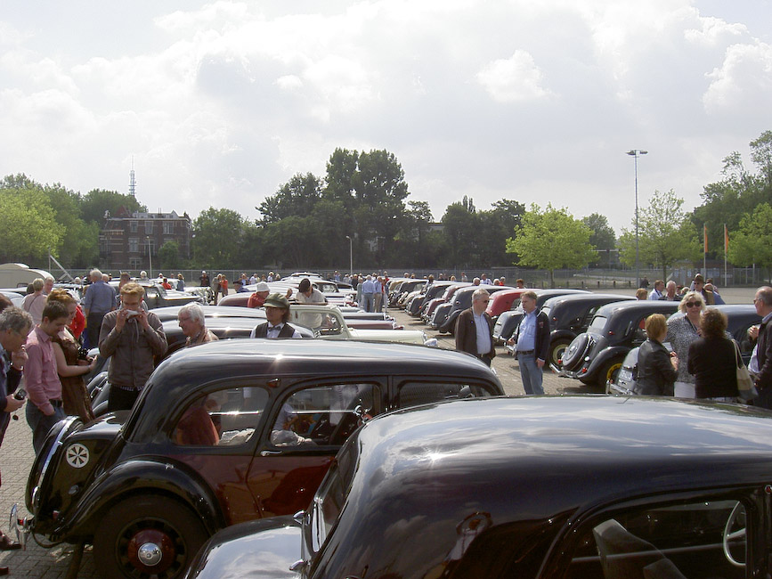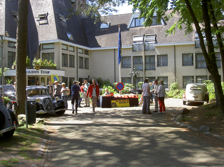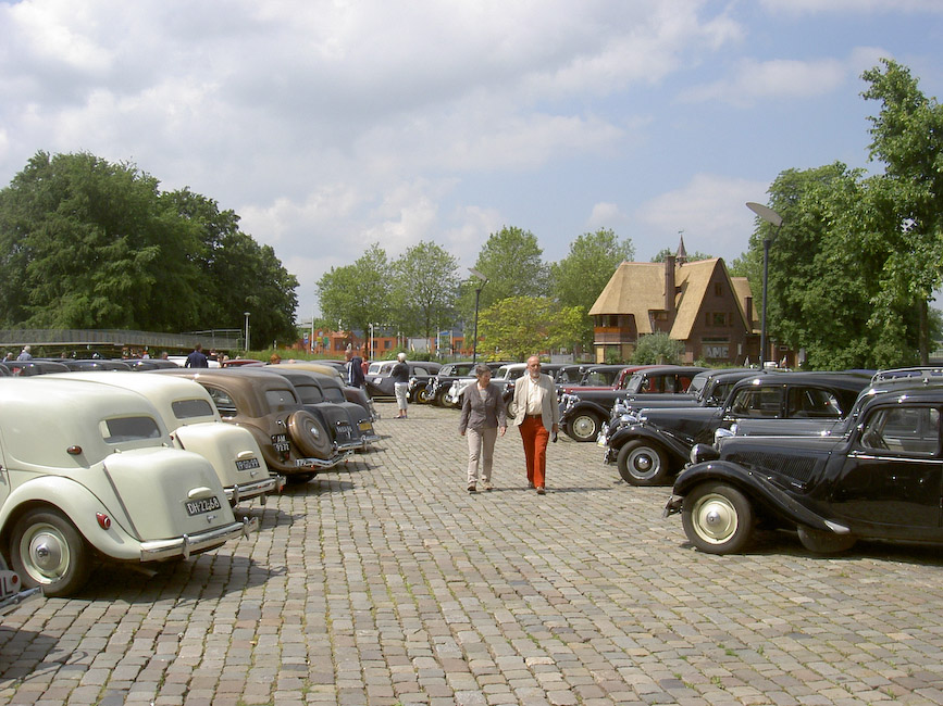 Voor het deelnemen aan de jubileum activiteiten hadden zich 22 equipes uit Noord opgegeven. Door de ritmeesters Mark Hermsen en Joop Posthumus waren twee aanlooproutes richting Koekange uitgezet. Dus zaten er rond de klok van 10 op Hemelvaartsdag 12 Tractionleden aan de koffie met koek bij Citroen Dijkstra Oudehaske die daarvoor speciaal haar showroom beschikbaar had gesteld. Op hetzelfde tijdstip zaten 10 Traction eigenaren met aanhang bij Hofsteenge in Rolde aan de koffie met gebak. Na al dit lekkers vertrokken beide groepen via een mooie route naar Koekange, waar Tractionspecialist Arjen Antonisse samen met zijn vrouw Feikje en familie een lunch zou aanbieden. In de showroom en de werkplaats stonden volop lekker belegde broodjes en huisgemaakte soepen voor ons klaar. De deelnemers lieten zich het aangebodene heerlijk smaken alvorens de rit naar de jubileumlocatie in Epe werd aangevangen. Familie Antonisse heel hartelijk dank voor de vorstelijke ontvangst! Mark en Joop hadden vanuit Koekange weer een mooie rit uitgezet die het gezelschap zonder kleerscheuren in Epe bracht. Voor het verslag van het jubileumfeest zelf kunt u kijken op de clubsite www.traction-avant.nl