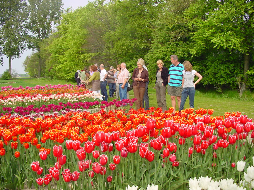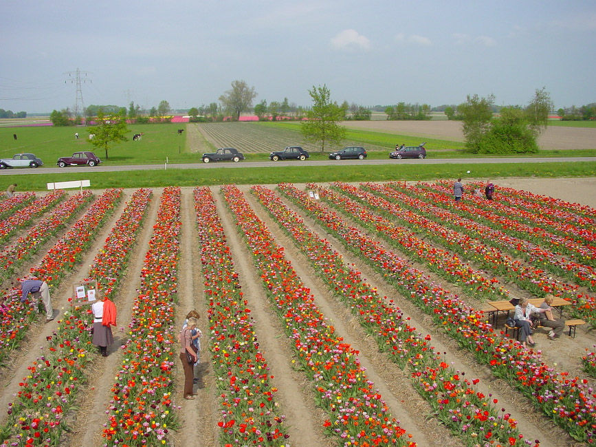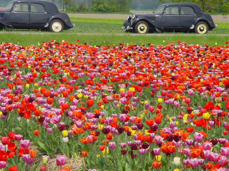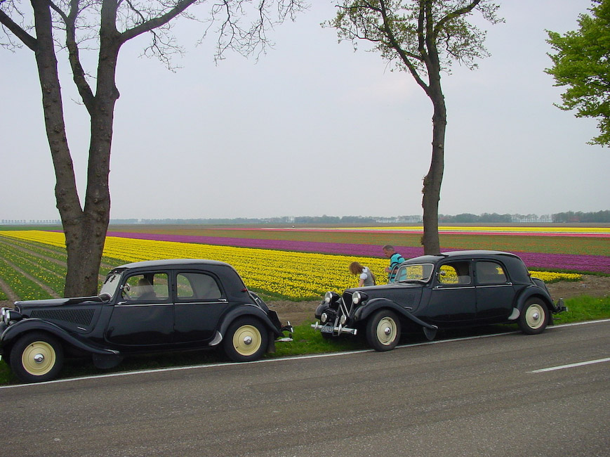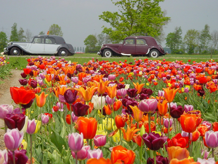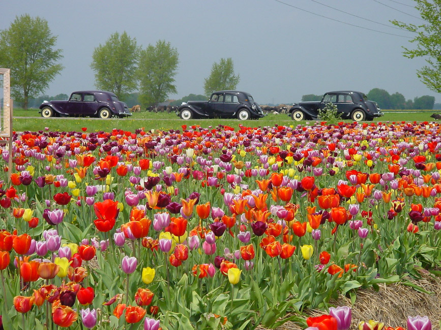 Zondagmorgen 26 april rond 11.00 uur stonden er op het Voetpad in Scherpenzeel 18 Tractions in het gelid opgesteld. Mark en Yvonne Hermsen hadden de Noordleden uitgenodigd op de koffie met wat lekkers. Daarna reden we een rit die zij hadden uitgezet langs en door de bollenvelden van de Noordoostpolder. De mooie route liep via het Kuinderbos naar de Tulpentuin bij Blokzijl waar naar hartelust bloemen geplukt konden worden. De tocht werd vervolgd via de bollenvelden van Marknesse, Luttelgeest, Bant, Emmeloord en Espel naar Creil. Hier werden we ontvangen door de familie Mellema-Versteeg die een bollenkwekerij en een vermeerderingsbedrijf hebben. De eigenaar vertelde vol trots over zijn bedrijf en liet ons enthousiast genieten van zijn werk. Op een proefveldje had hij tulpen staan die hij zelf had ontwikkeld en waarvan er waarschijnlijk maar een paar door de selectie zullen komen en op de markt worden gebracht. Wist u dat er tussen de eerste kruising en de verkoop van de bollen in de winkel een periode van 25 jaar zit ? Misschien hebben wij wel de tulp gezien die over 25 jaar als Traction Avant bij de bloemist te koop is.