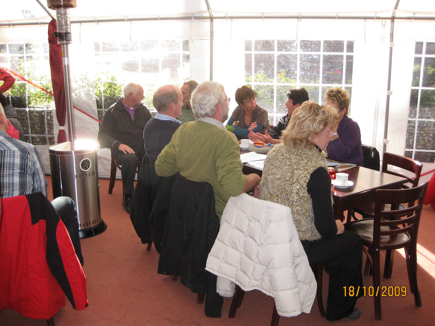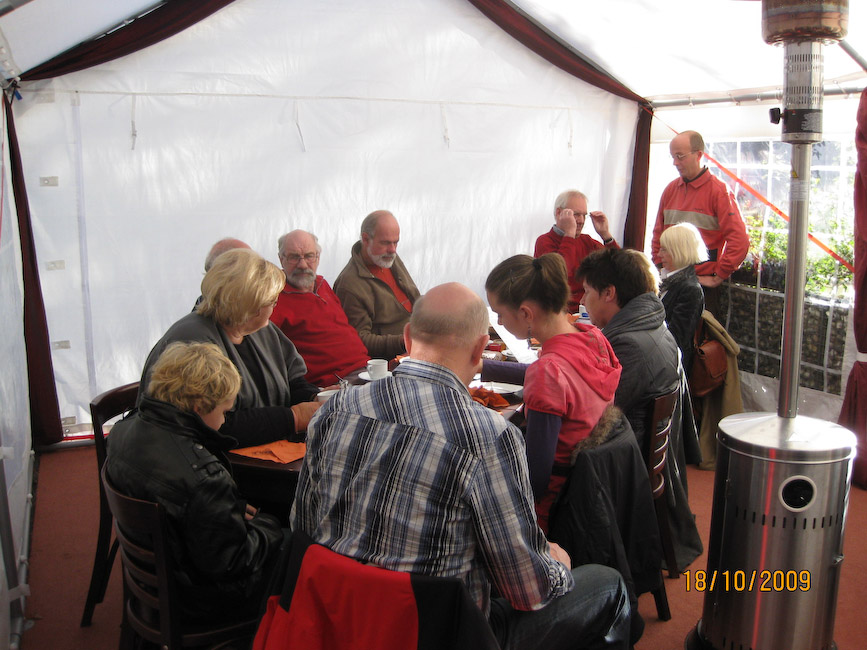Waar we geen voorrang meer kregen was bij het Theehuis. De snert was heerlijk, maar vanwege de enorme drukte konden we niet meer allemaal bij elkaar zitten. Daardoor heeft niet iedereen het dankwoord van de voorzitter gehoord, maar Guus heeft de organisatoren heel hartelijk bedankt voor de geweldige organisatie.