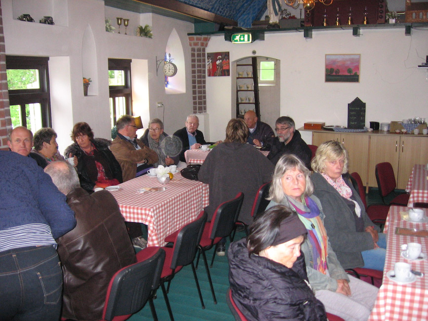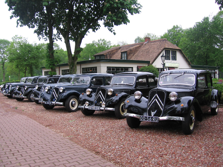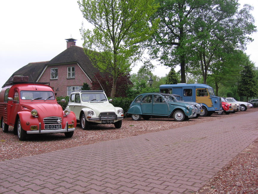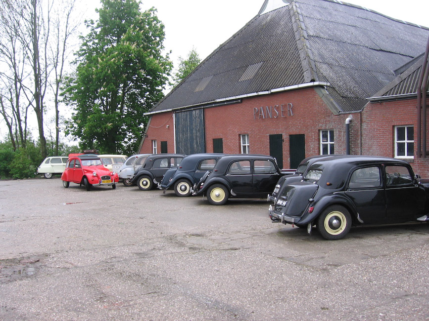 Het parkeerterrein van "de Drie Provincien" in Bakkeveen stond vol met zeer veel verschillende types van het double chevron merk. Samen met de Citroen Club Fryslân (CCF) had TAN Noord een rit georganiseerd door de 3 Noordelijke Provincies. De goede naam van onze ritten is inmiddels ver buiten onze afdeling bekend en dus was er zelfs een team uit Twenthe naar het hoge Noorden afgereisd! De passagiers van de ruim 22 bolides werden voordat de rit begon ontvangen met koffie en cake en kregen uitvoerig uitleg over de rijmethode die de dag zou worden gevolgd. Deze Tsjechische rijmethode is een ideale manier om een rit te rijden zonder routebeschrijving, kaartlezen, discussie in de auto en verdwalen! De gehele dag is geen enkele auto vermist of verdwaald geweest: dus een goede manier van ritrijden gebleken. Het eerste deel van de rit ging door en langs de fraaie landschappen van Drenthe en Groningen en na een stop bij het kerkje van Harkema (dat in Madurodam niet zou misstaan) vervolgden we onze weg richting Friesland naar de pick-nick plaats in Leens voor het lunchpakket. Helaas waren de weergoden ons slecht van gezind en moesten de organisatoren uitwijken naar een grote landbouwschuur die door de boer belangeloos ter beschikking was gesteld. Na de lunch met broodjes en warme worst werd de rit voortgezet door de groene landerijen van Friesland en eindigde uiteindelijk in Zevenhuizen, waar de deelnemers konden aanschuiven aan een perfecte barbecue die ook al,vanwege het weer, naar binnen was verplaatst. Al met al een perfecte dag die onze Ritmeester Joop Posthumus samen met de CCF had georganiseerd: HULDE !!