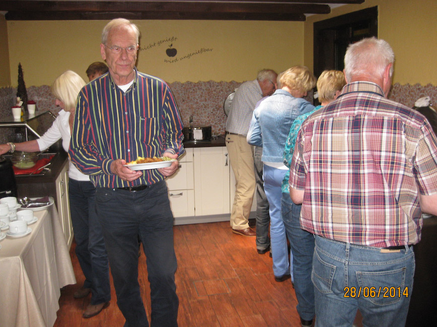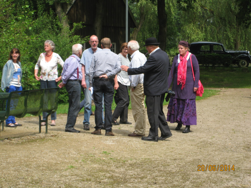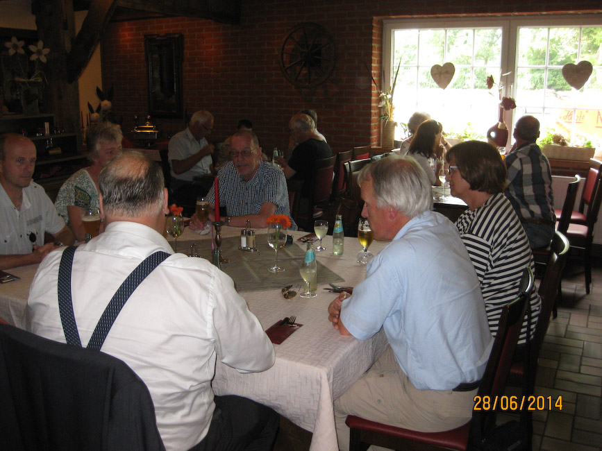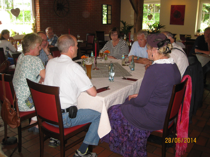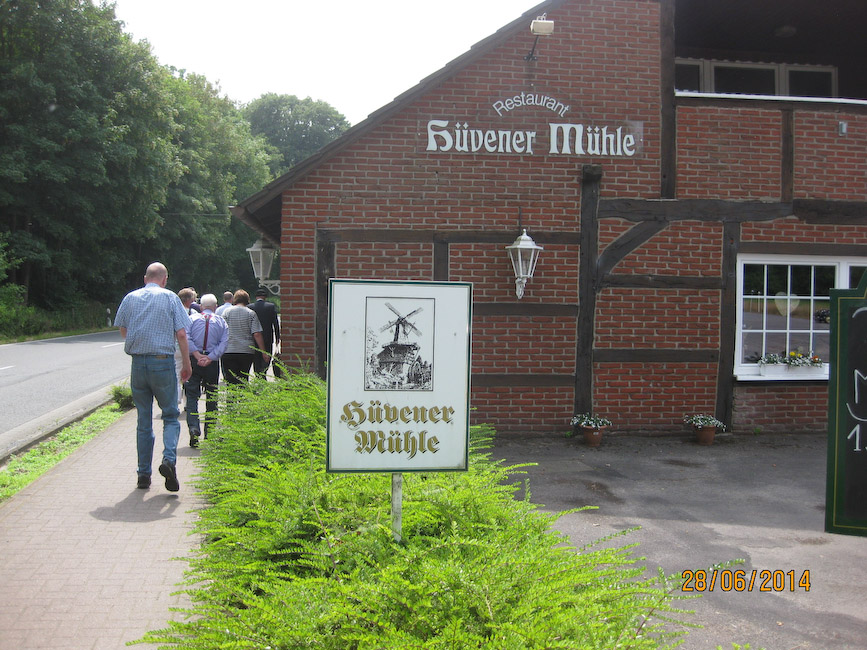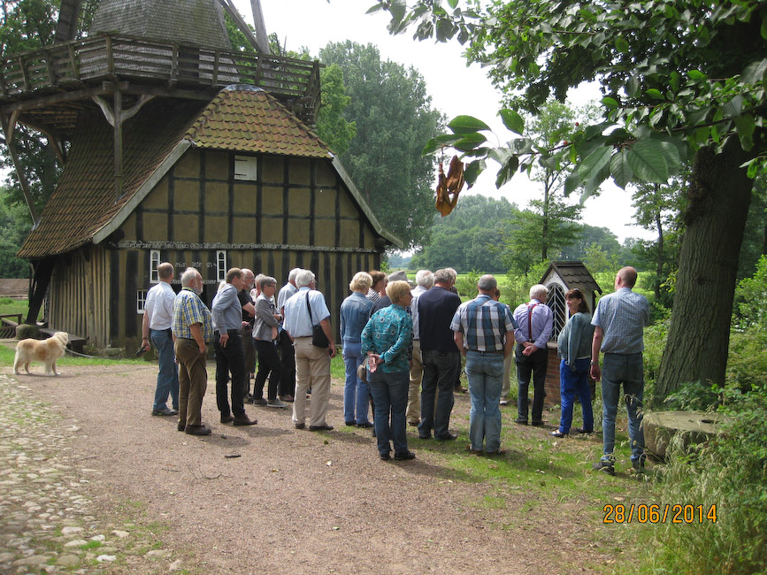 Zaterdag 28 juni hadden 27 personen zich verzameld op het terras van Restaurant De Ruiten Aa in Sellingen. Na de inleiding door de organisatoren, Gerrit en Guus, gingen we in 12 auto's op pad. De eerste stop was Watermolen Brünefort. Daarna gingen we verder naar de Hüvener Mühle, een uniek bouwwerk van een windmolen, gecombineerd met een watermolen. In het bijbehorende restaurant deden we ons te goed aan een heerlijke buffet lunch.