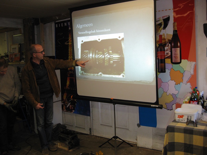 Daarna hielden Mark en Gerrit een presentatie over de versnellingsbak en met inbreng van de deelnemers zijn alle mogelijke problemen en oplossingen besproken.