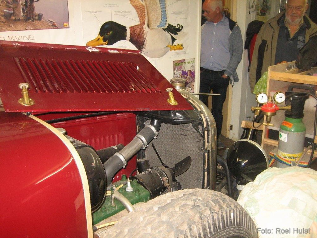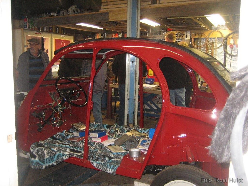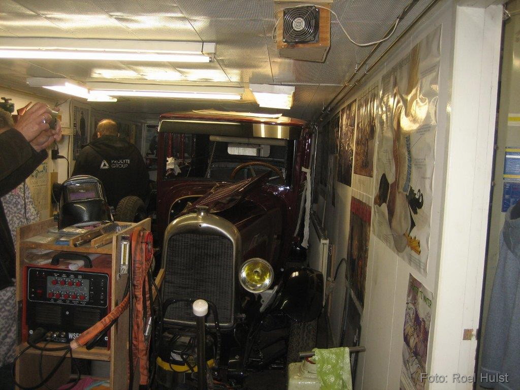 Bij Dany Zwarberg in Termunterzijl zagen wij de vergevorderde restauratie van zijn Citroen B14. Deze auto is door Dany ongeveer 15 jaar geleden gekocht als wrak op een autosloperij in Frankrijk. De verdere restauratie van de B14 staat voorlopig op een laag pitje. Momenteel wordt er door Dany volop gewerkt aan de restauratie van een 2CV. Hij maakt daarbij gebruik van een splinternieuwe koets en nagelnieuw chassis die hij in de 80-er jaren al heeft aangeschaft en nu gaat gebruiken. De wanden van Dany's garage zijn bedekt met prachtige posters en uiteraard is ook zijn garage volop voorzien van de nodige metaalbewerkingsmachines. De middag werd afgesloten met een door Martha Zwarberg verzorgd hapje en een drankje.