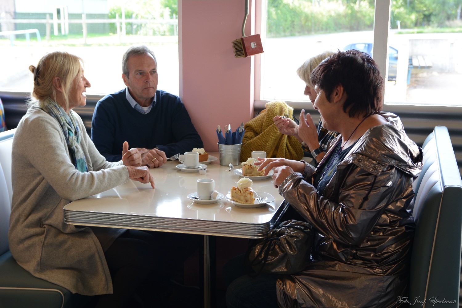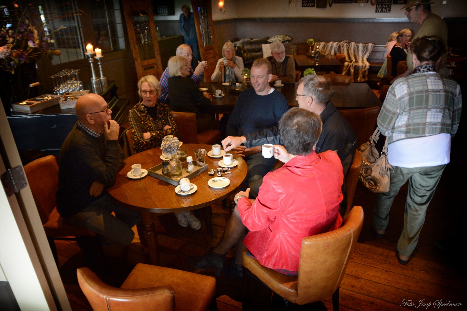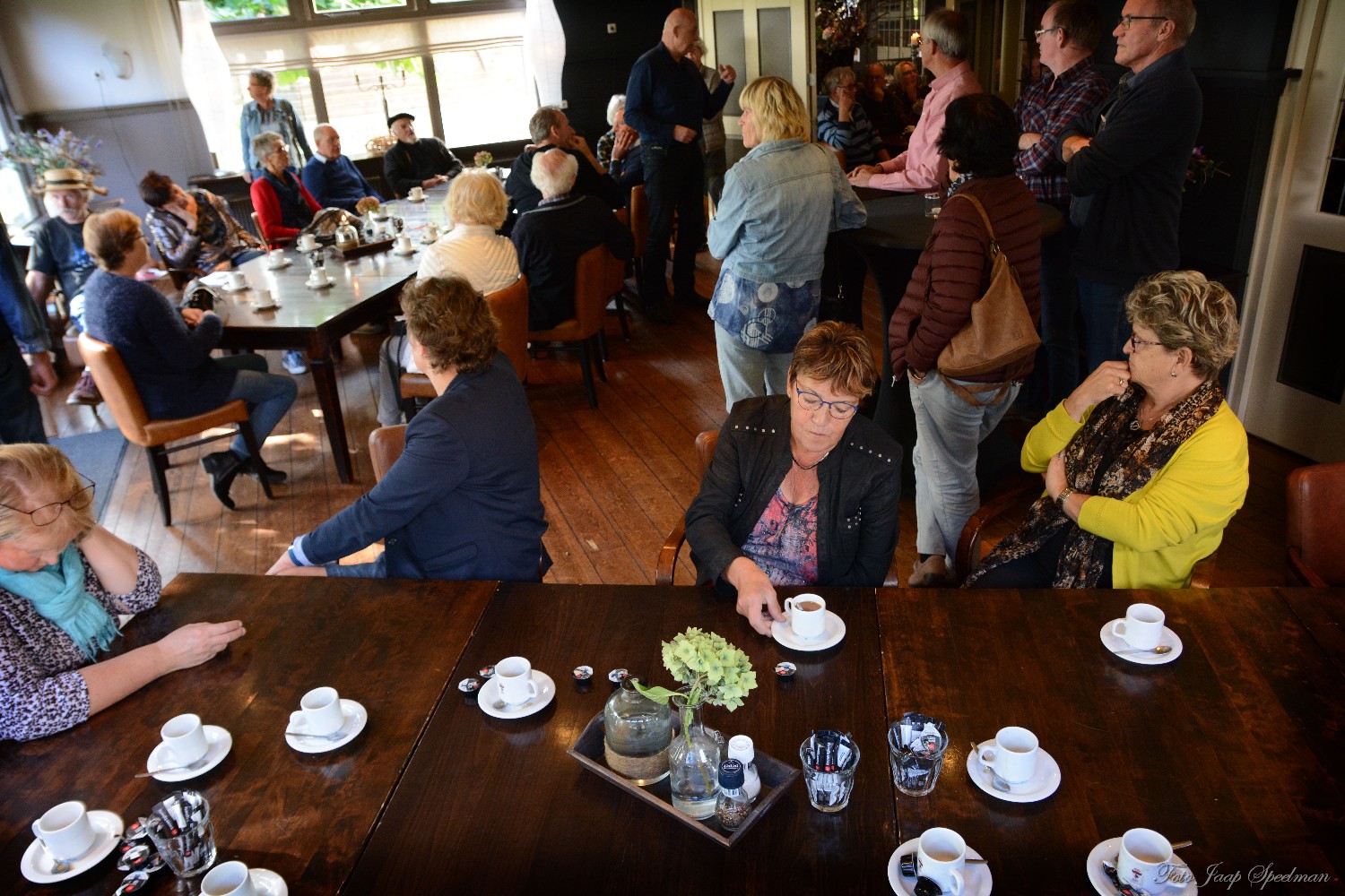 Voor de Jubileumrit hadden zich ruim 30 leden gemeld en iedereen werd rond de klok van 12.30 uur verwelkomd bij Gasterij Inkies in Midwolde waar koffie en cake klaar stond.