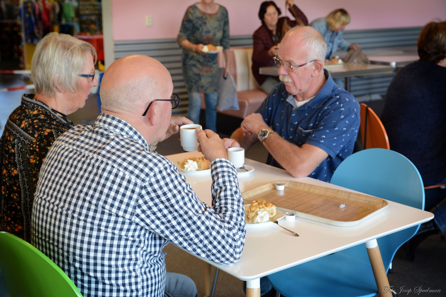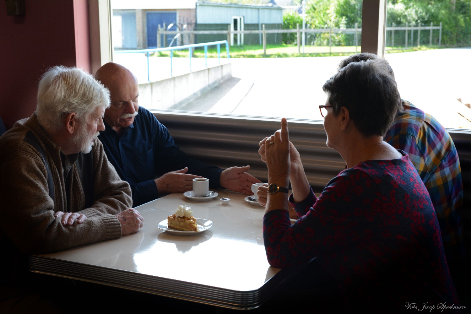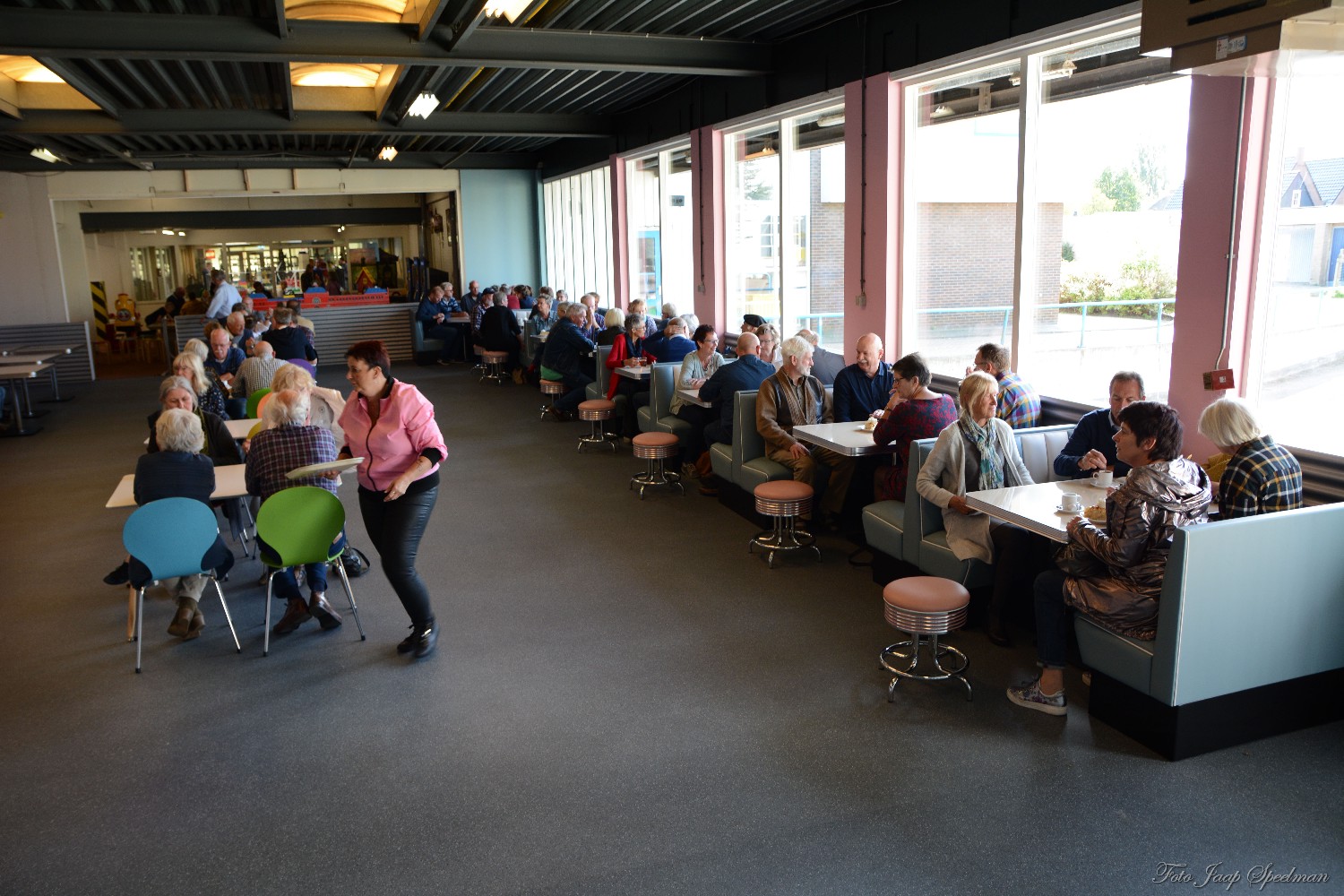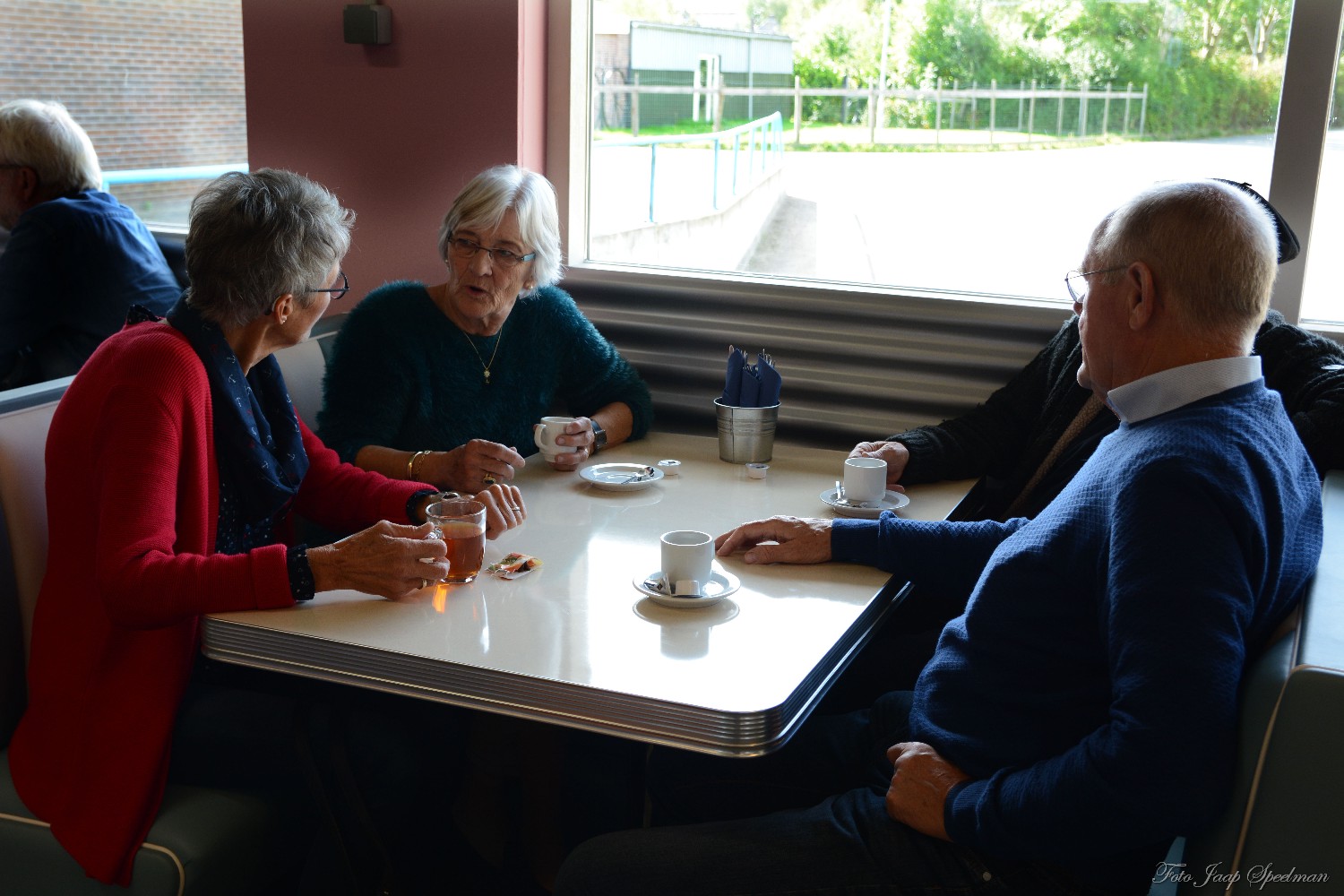 Voor de Jubileumrit hadden zich ruim 30 leden gemeld en iedereen werd rond de klok van 12.30 uur verwelkomd bij Gasterij Inkies in Midwolde waar koffie en cake klaar stond.
