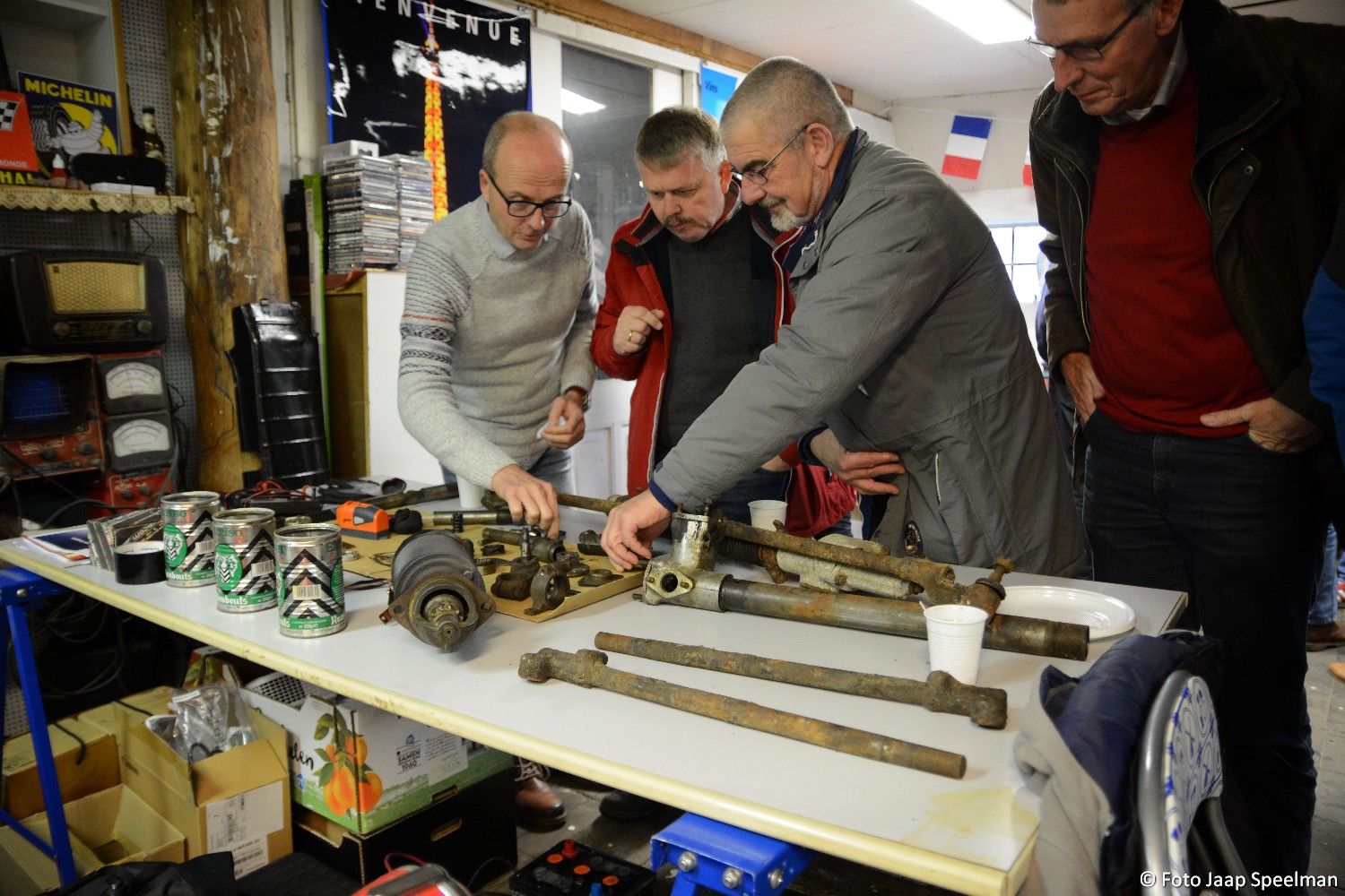 Of de mannen nu kwamen voor de tecnische uitleg over de stuurinrichting door Mark en Gerrit, of voor de beaujolais met lekker hapjes of voor de welklinkende accordeonklanken van Luit Beenen zal wel een raadsel blijven. Maar in de garage was het in ieder geval goed toeven voor iedereen die houdt om in franse sferen te discussiëren over de mooie techniek van onze oude dames. Vanaf deze plaats willen we Gerrit bedanken voor zijn gastvrijheid en Mark voor de interessante uitleg van de stuurinrichting van onze Tractions. Chapeau!!