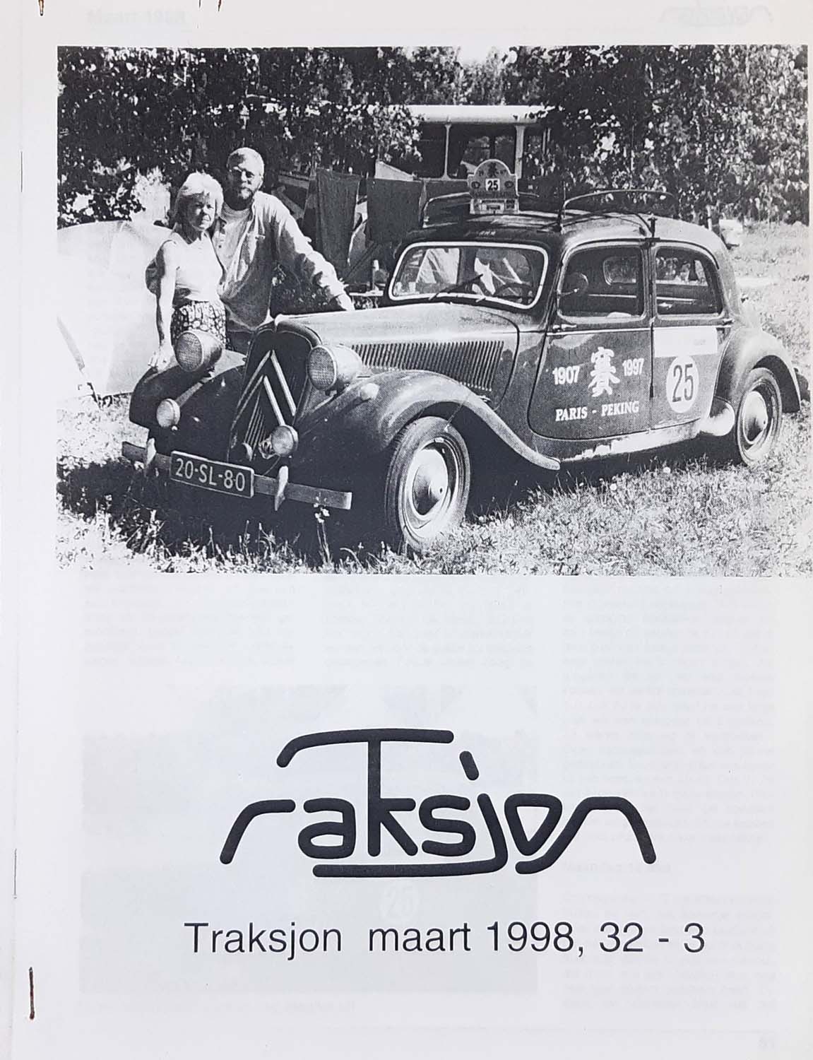 Jubilarissen Voorafgaand aan de lezing was er speciale aandacht voor zes jubilarissen, waarvan dit jaar één 50 jaar lid, twee veertig jaar lid en drie 30 jaar lid zijn van TAN. Door de voorzitter is aan Tjeerd Zeilstra (50 jaar lid) en Bennie Mous (30 jaar lid) een attentie overhandigd. Reis Parijs - Peking Tom en Jopie zijn in het voorjaar van 1997 met in totaal 27 equipes vanuit Parijs gestart voor hun reis met de Traction naar Peking. Het reisgezelschap was afkomstig uit diverse landen en met allerlei auto's. Dagelijks werd door de groep een vooraf bepaald traject afgelegd. Bij pech onderweg werd op elkaar gewacht. Onderweg werd meestal gekampeerd in tentjes en soms op uitnodiging geslapen bij lokale dorpsbewoners. Aangezien de reis oostwaarts ging, bleef het onderweg voorjaar en was het weer meestal aangenaam. Met fraaie beelden van eindeloze wegen en bossen in Siberië en de steppen in Mongolië ging het via het platteland van China naar Peking. De auto's zijn in Peking ingescheept en vervolgens ging de terugreis naar Nederland per vliegtuig. Tom vertelde enthousiast over de belevenissen onderweg. De reparaties die soms met minimale middelen door lokale technici werden uitgevoerd. Hier bleek dat in de meest afgelegen gebieden razend knappe prestaties werden verricht. Over de gastvrijheid van de veelal arme bevolking en festiviteiten waarvoor zij werden uitgenodigd. Naast de film had Tom veel foto's, enkele Chinese krantenartikelen over de reis en zijn Chinese nummerbord meegenomen. Het was een boeiende lezing die door de aanwezigen volop werd gewaardeerd.