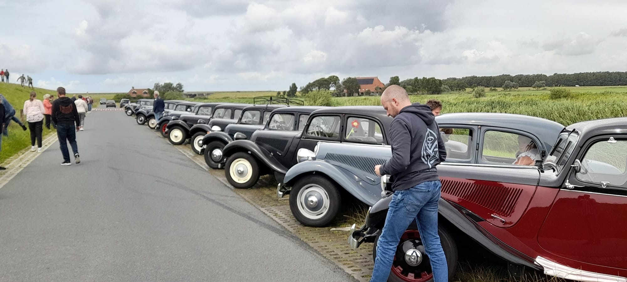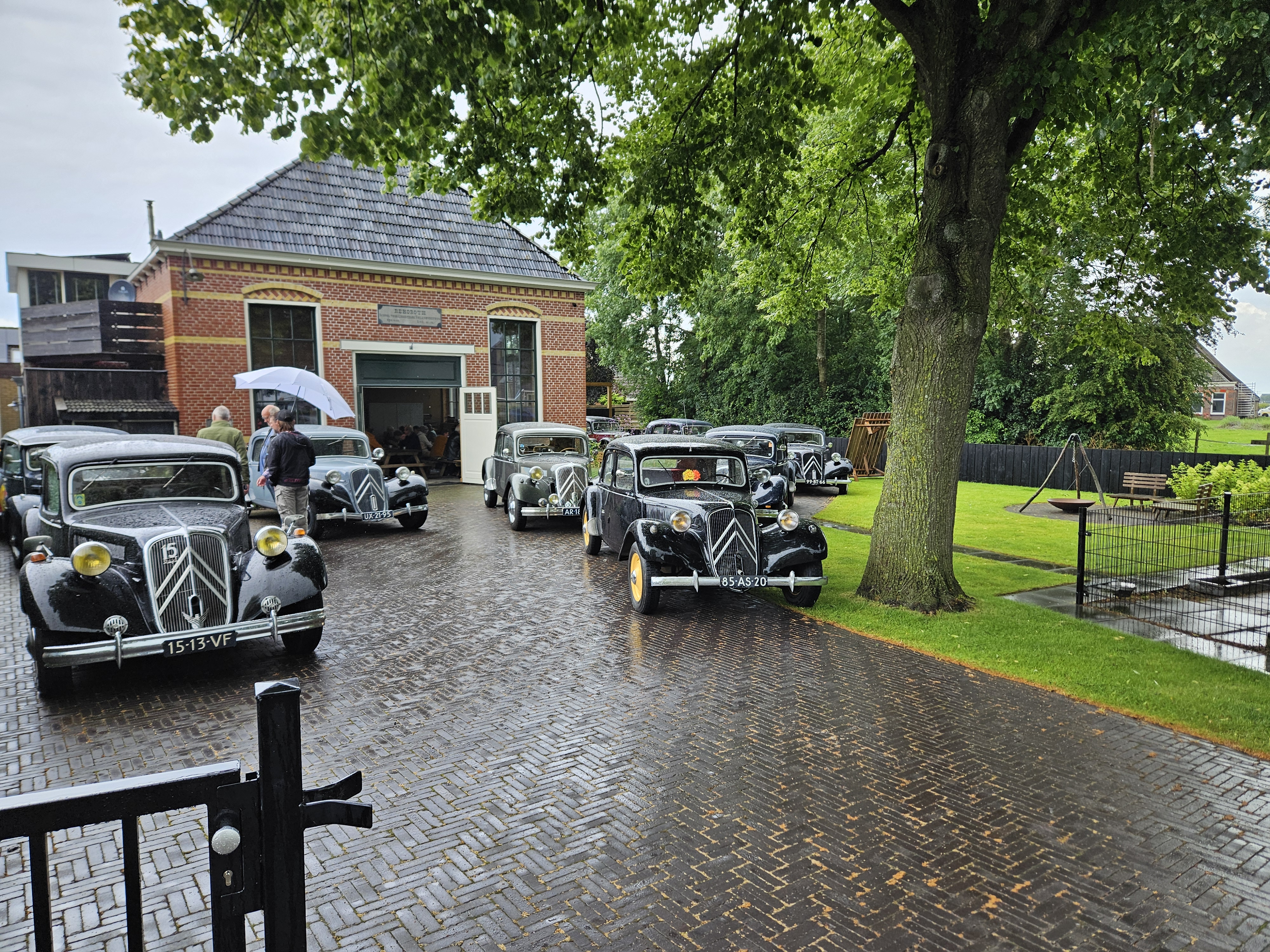 Op zondag 7 juli waren we vanaf 12:00 uur welkom bij de familie Feenstra in Achlum. We werden ontvangen met koffie en heerlijke taart die speciaal gemaakt waren door de moeder van Stefan. Er waren 20 Tractions aanwezig en 49 personen. Op verzoek van Stefan en Grada Feenstra was de uitnodiging voor deze rit ook gedeeld met de afdeling Amsterdam. Dat was een prachtig initiatief. Hierdoor waren er 6 equipes extra!! Wat een gezelligheid. Leuk om elkaar zo te ontmoeten en el-kaars auto's te bewonderen.