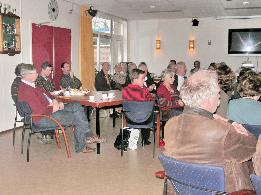 De opkomst was groot. Onder het genot van een kopje koffie of thee en een nieuwjaarsrolletje met slagroom hebben we elkaar een gelukkig nieuwjaar kunnen toewensen. Daarna was het formele gedeelte; de jaarlijkse ledenvergadering.