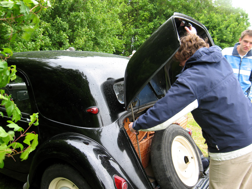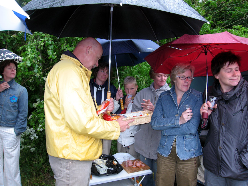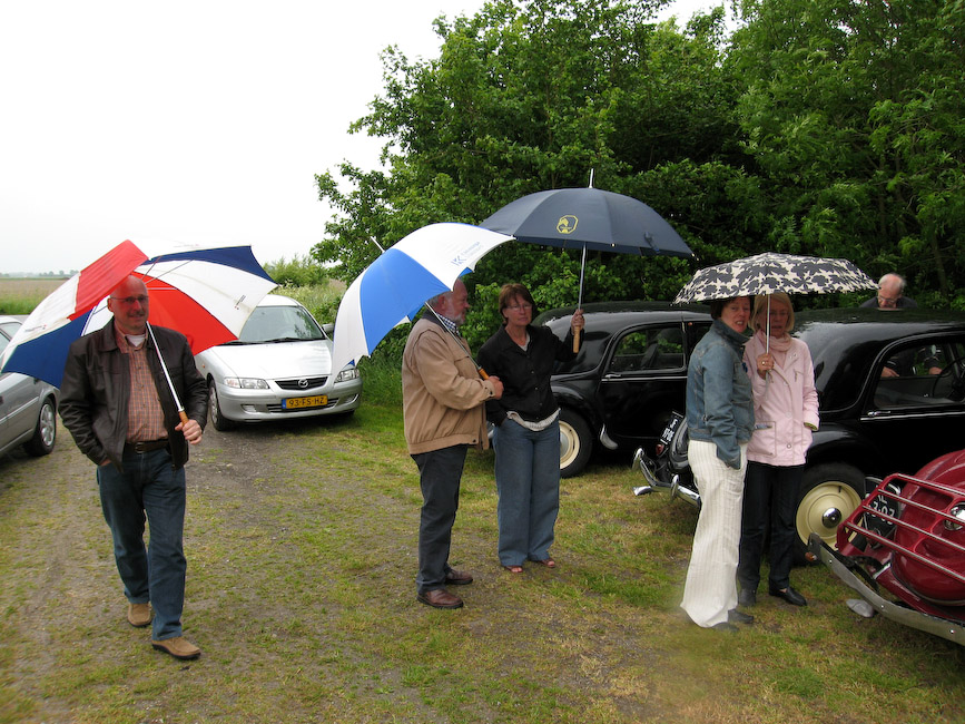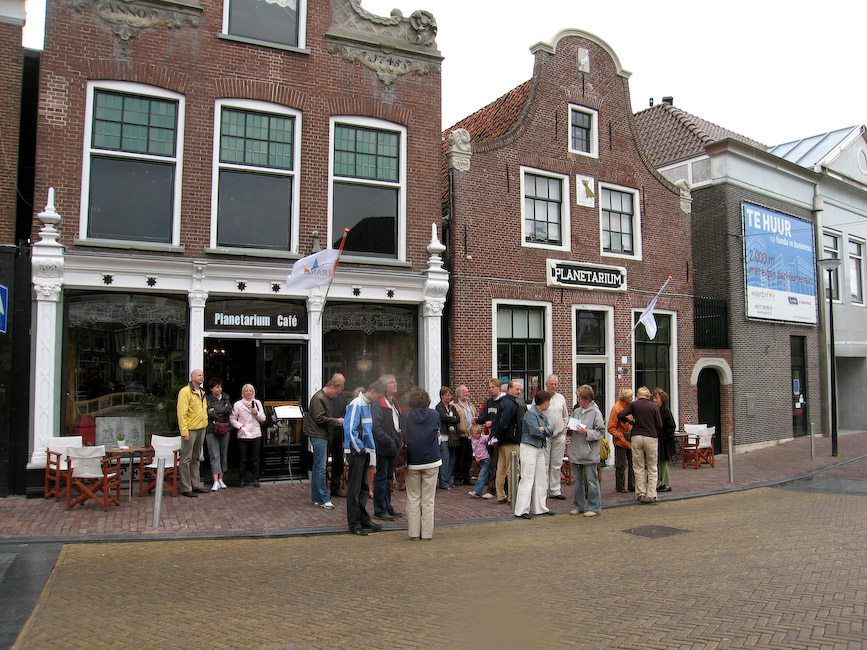 Van heinde en verre waren leden van de afdeling Amsterdam en Noord naar dit mooie Friese dorpje gekomen om samen een rit de rijden en een bezoek te brengen aan het oudste nog werkende planetarium ter wereld in Franeker. De rit van Witmarsum naar Franeker was een regelmatigheidsrit waarvoor naast de juiste snelheid ook enige cultuurkennis en Tractionwetenschap noodzakelijk was. Het planetarium was kennelijk niet op een grote toeloop berekend waardoor het even duurde voordat iedereen kennis had genomen van het levenswerk van Eise Eisinga. Buiten begon het langzaamaan wat te miezeren maar dit mocht de stemming niet drukken. Tot besluit hadden ritmeesters Mark en Yvonne rond de prijsuitreiking voor de regelmatigheidsrit een kleine picknick gepland die ondanks de regen door iedereen zeer werd gewaardeerd. Tenslotte heeft de clubshop niet voor niets parapluie's in het assortiment. De eerste prijs ging naar Erik Eikelboom, maar wat wil je ook met iemand waarbij alleen Tractionbloed door de aderen stroomt!! De tweede prijs ging naar Martin Bosman, die veel voordeel had aan zijn Franse co-pilot. De derde prijs was voor Roel Huls ondanks zijn wat onregelmatig lopende Trax. Kortom een gezellig en leerzaam evenment.
