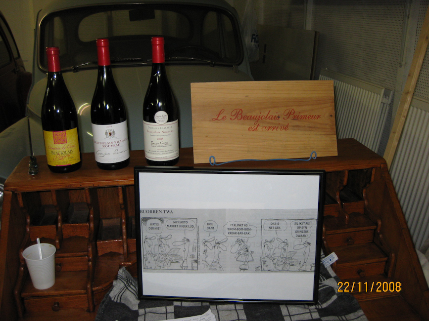 En toen moest de Beaujolais worden geproefd. Voorzichtig, want de meesten moesten nog door slecht weer naar huis rijden.