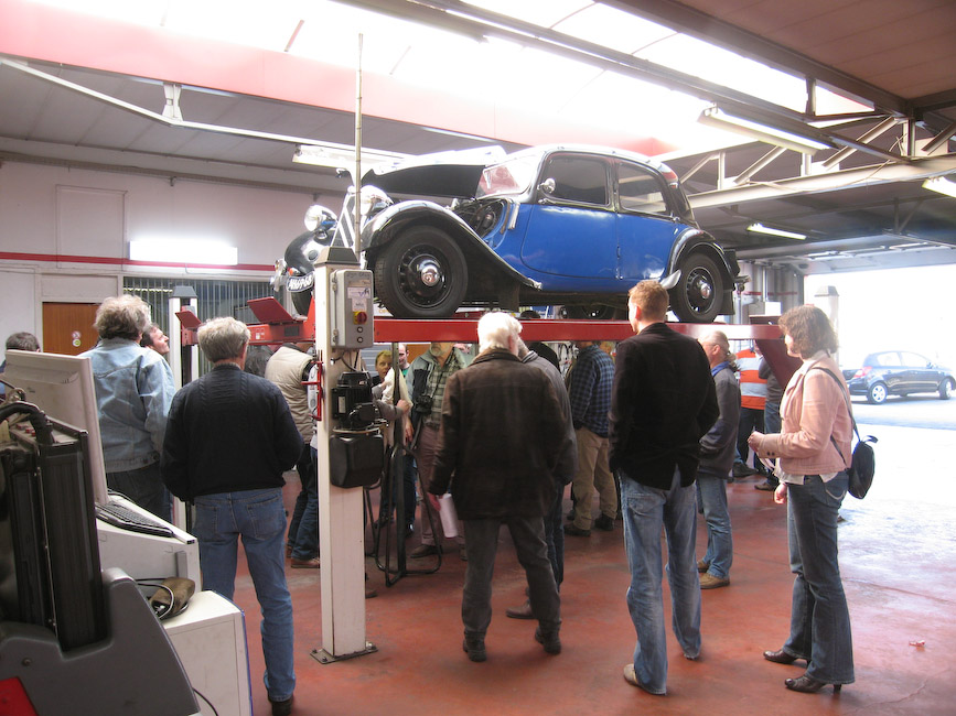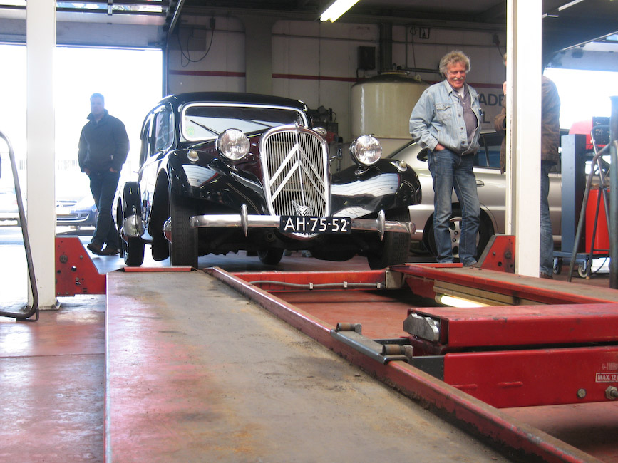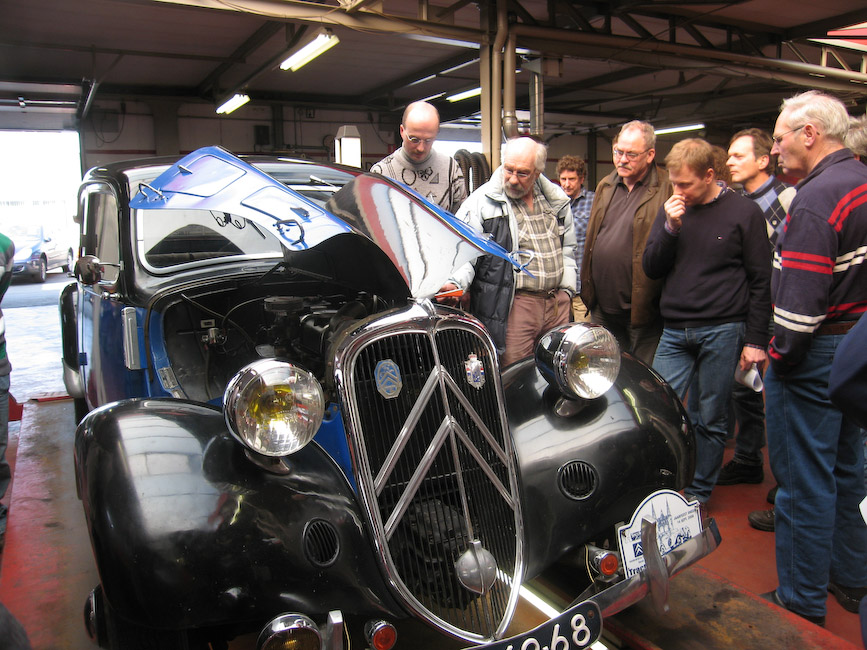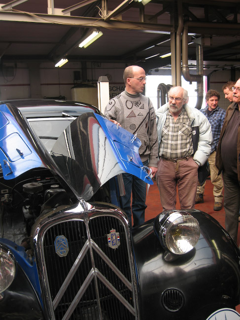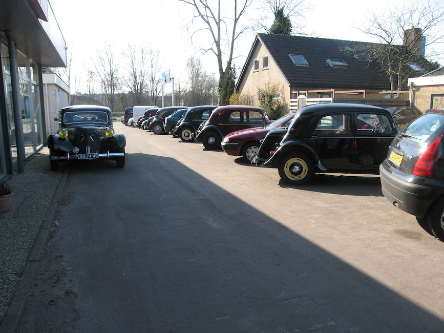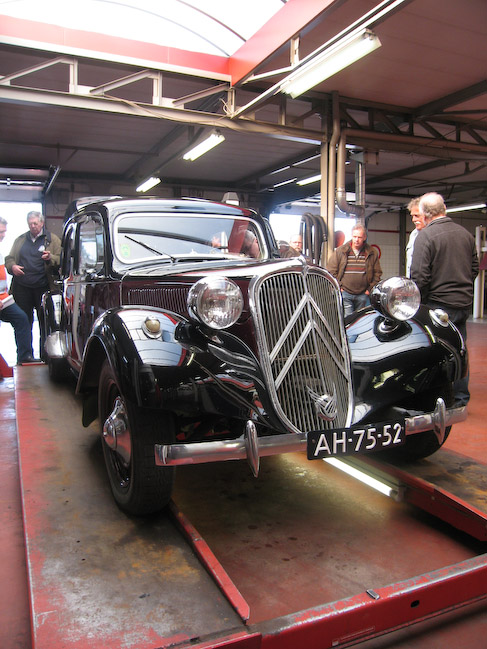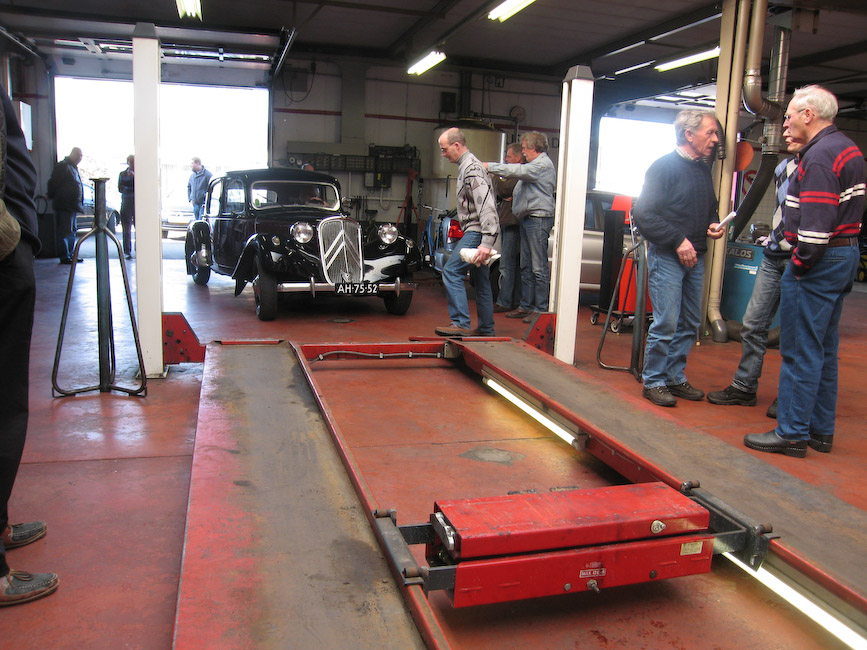 Tegen de 25 leden verwelkomd met koffie en koek door garage Veldma Citroën in Groningen. Een brug was voor ons vrij gemaakt en zodoende konden we ons uitleven op de Tractions die bij wijze van demonstratie werden gekeurd.