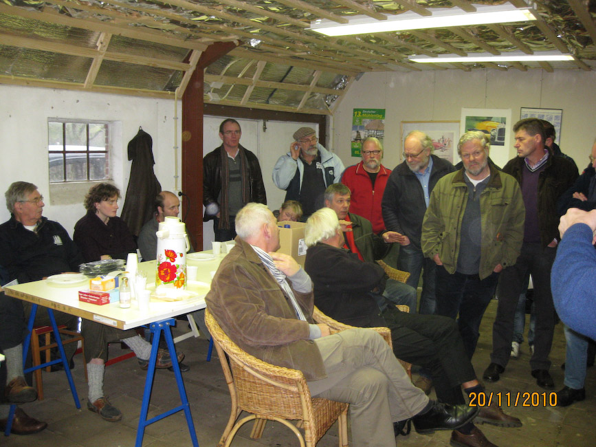 Op 20 november 2010 tegen 13:00 uur liep Gerrit’s “leslokaal” alweer aardig vol. Terwijl Roel Hulst en Henk Tibben zich van hun taak als kascommissie kweten, stroomde de zaak verder vol. Onder het genot van een kop koffie met een heerlijke wafel praatte iedereen weer bij. Toen de koffie op was en de boekhouding gecontroleerd, kon het serieuze deel van de middag beginnen.