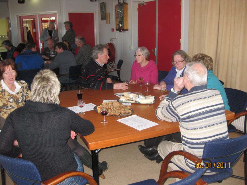 Na de vergadering is het gezellig samenzijn voortgezet onder het genot van een drankje, stokbrood met diverse soorten kaas, olijven en noem maar op.