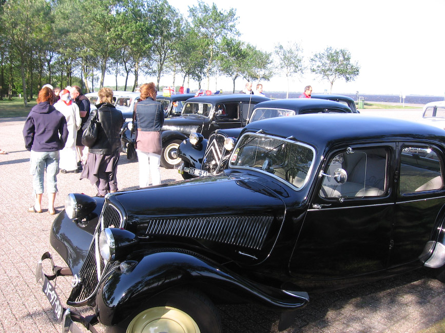 De Traction Owner Club (TOC), onze Britse zusterclub, was van 29 april tot en met 2 mei in Nederland om ons land te verkennen. Ton van Leeuwen en Arnoud Alderlieste hadden een mooie rit uitgezet waarin natuurlijk alle typisch Nederlandse bezienswaardigheden werden aangedaan. Zelfs ons nieuwe onderdelenmagzijn in Rijswijk werd bezocht. Op de tweede dag (Koninginnedag) stond een bezoek aan Het Loo, Kampen en Urk op het programma met aan het eind van de dag een overnachting in Franeker. Omdat de route dus door Noord Nederland liep, had het afdelingsbestuur bedacht dat het leuk zou zijn de groep op ons territorium te begroeten. Om 17.00 uur stonden 10 Noordelijke Tractionisten te wachten op parkeerplaats "de Lanen" op de A6 bij Oosterzee. Het duurde even voordat de stoet in twee delen op de parkeerplaats aankwam. Veel auto's waren royaal versierd met Britse en Nederlandse Vlaggen en niet te vergeten veel Oranje. We begroetten onze gasten natuurlijk met het typische Friese slokje hetgeen erg op prijs werd gesteld. Vanzelfsprekend werd er weer uitvoerig naar alle aanwezige Tractions gekeken waarbij opviel dat veel Engelse auto's een 12 volts installatie aan boord hadden. Na de groepsfoto hebben we de gasten richting Franeker begeleid.