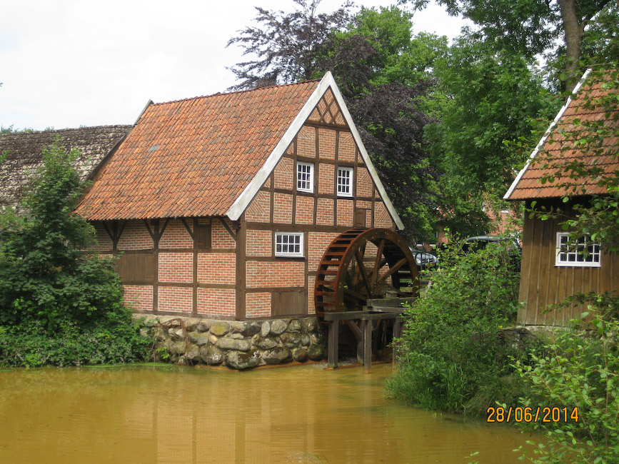 Zaterdag 28 juni hadden 27 personen zich verzameld op het terras van Restaurant De Ruiten Aa in Sellingen. Na de inleiding door de organisatoren, Gerrit en Guus, gingen we in 12 auto's op pad. De eerste stop was Watermolen Brünefort. Daarna gingen we verder naar de Hüvener Mühle, een uniek bouwwerk van een windmolen, gecombineerd met een watermolen. In het bijbehorende restaurant deden we ons te goed aan een heerlijke buffet lunch.