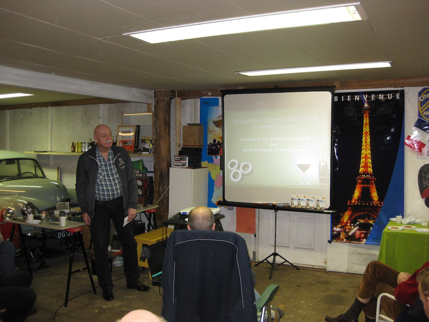 Daarna hield Mark een diapresentatie over het dashboard, wat men daarop aantreft, de verschillende uitvoeringen en de werking van de verschillende elementen.