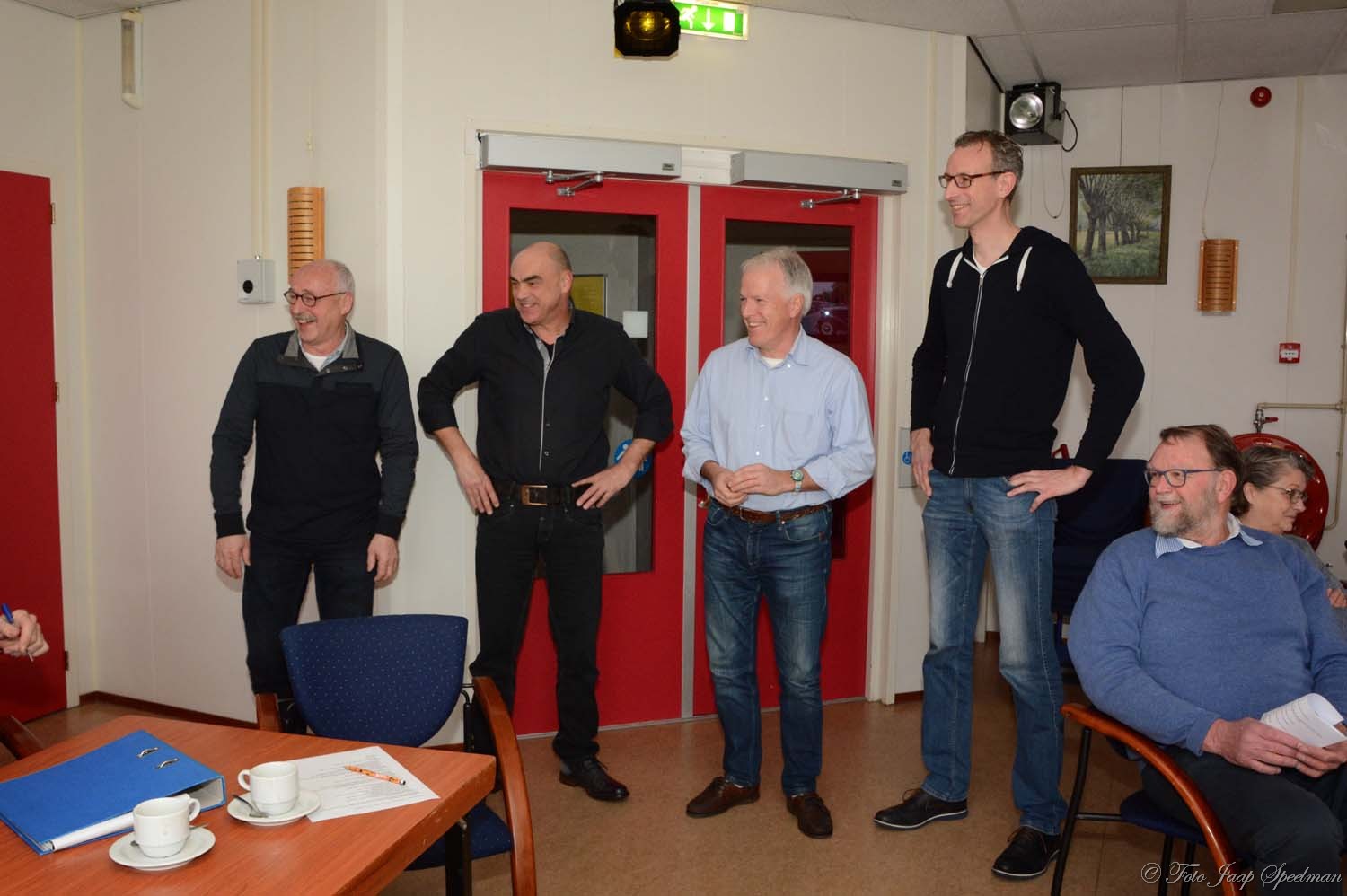 Er waren ook dit keer een aantal jubilarissen, een viertal was aanwezig tijdens de ledenvergadering: Libbe van Es, Kor Postema, André Schulpen en Chris van der Velde. Ze kregen een Frans presentje en welgemeend applaus van de aanwezige leden.