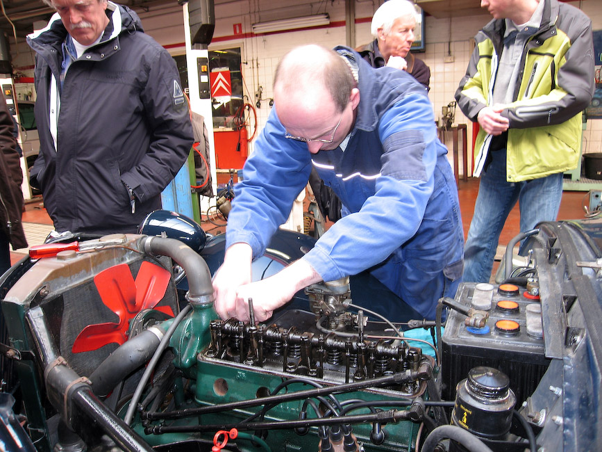 Zaterdaas een nauwelijks droge dag tussen veel vorst, sneeuw en regendagen, dus hadden slechts 3 van de aanwezigen de Traction meegebrachtg. 6 maart w Tegen de 25 leden werden verwelkomd met koffie en koek door garage Veldma Citroën in Groningen. Er waren zoals gezegd 3 Tractions om het kleppen stellen op te kunnen oefenen.