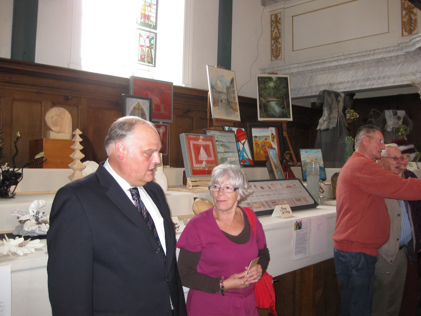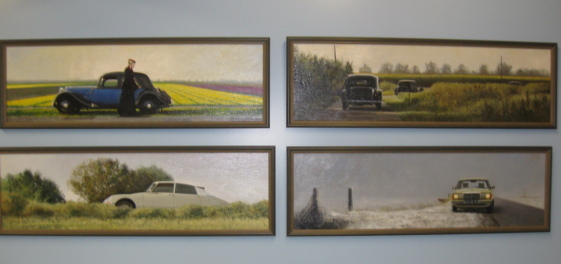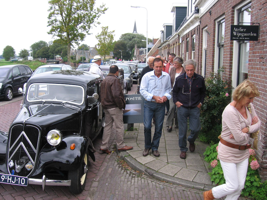 Nadat iedereen bijgekomen was van de rit er naar toe vertrokken we, achter Martin aan, voor een rit over Friese weggetjes en dijkjes, door dorpen en steden, om in Tjerkwerd te stoppen bij Atelier Wijngaarden. Behalve in deze galerie was er ook in de kerk van Tjerkwerd een expositie en die hebben we ook bekeken.