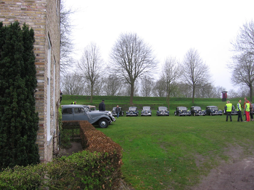 Voor de lunch hadden zich 90 personen aangemeld zodat we konden rekenen op een goede opkomst. Uiteindelijk zijn er meer dan 120 personen naar Bourtange getrokken, niet allemaal met een Traction omdat de weergoden ons aardig in de steek hebben gelaten, maar de parkeerruimte op het Pastoorbastion stond aardig vol.