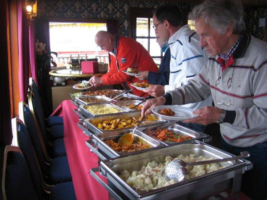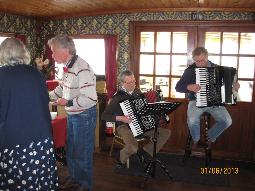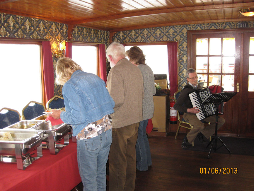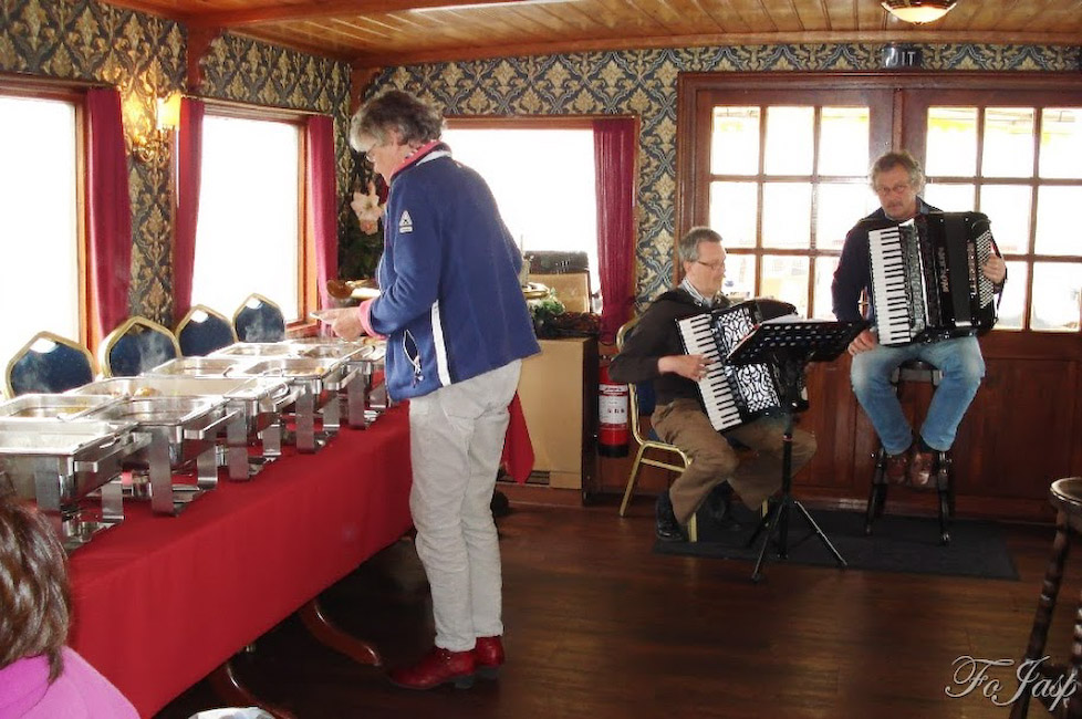 Maar daarom niet getreurd, binnen werden we vergast op een heerlijk buffet, begeleid door muziek van Luit Beenen en Dick Hendriks.