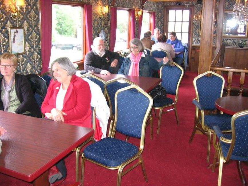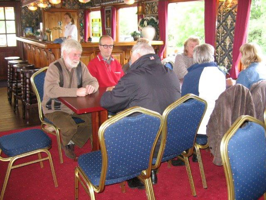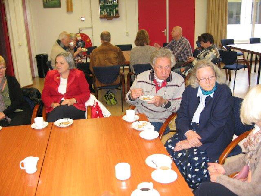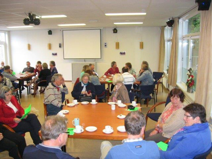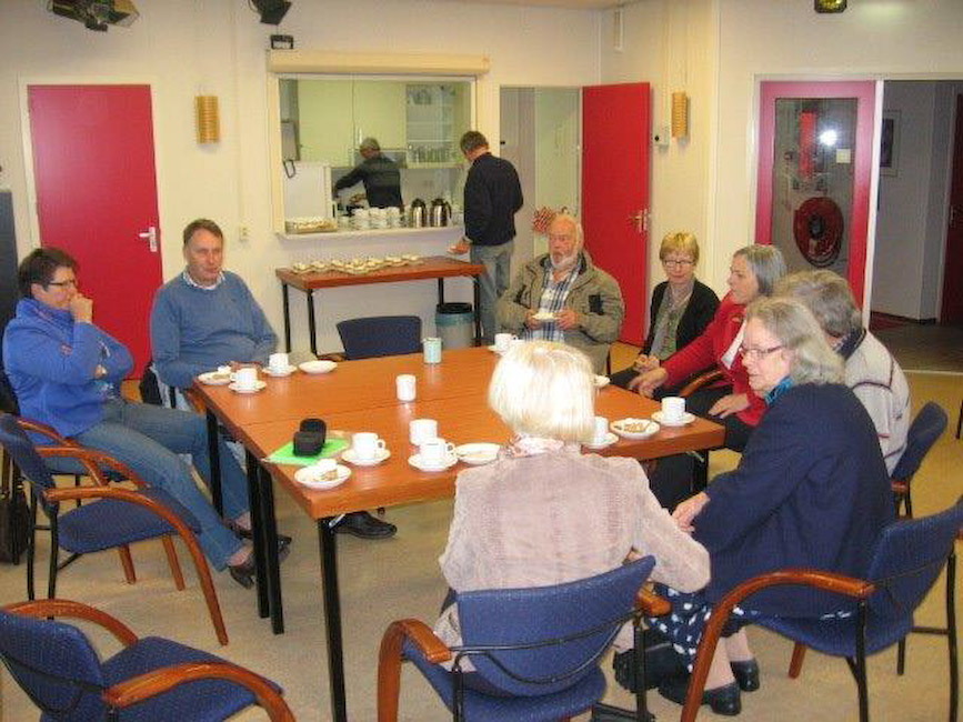 In ons vaste "clubhuis" de Skule in Drachten hebben we ons eerst te goed gedaan aan koffie met gebak, waarna we een routebeschrijving kregen en op weg naar Akkrum gingen.