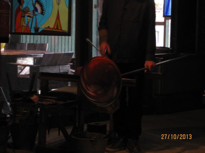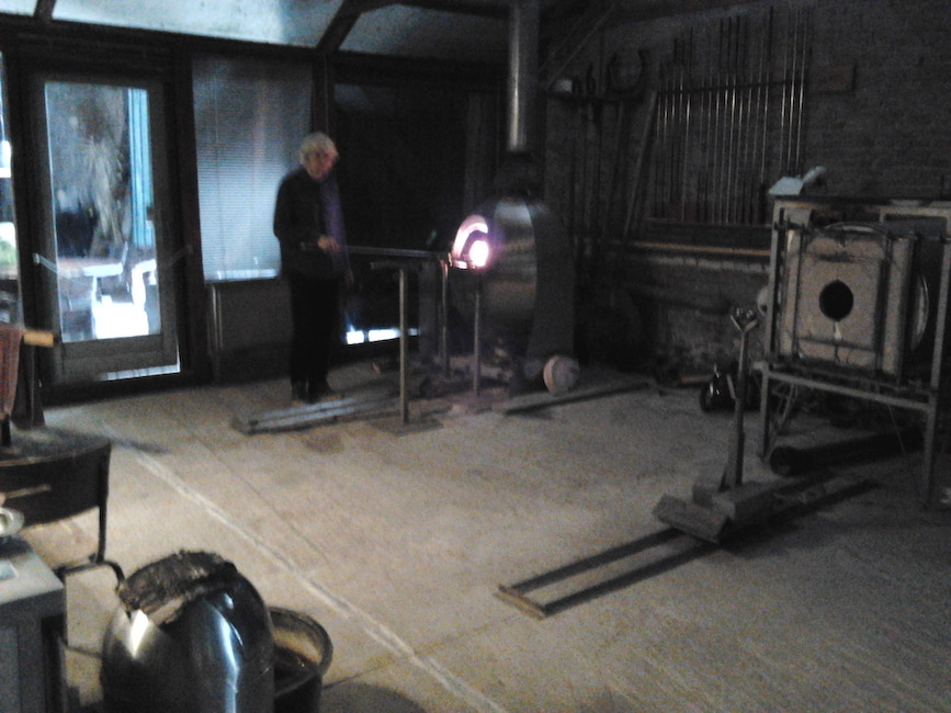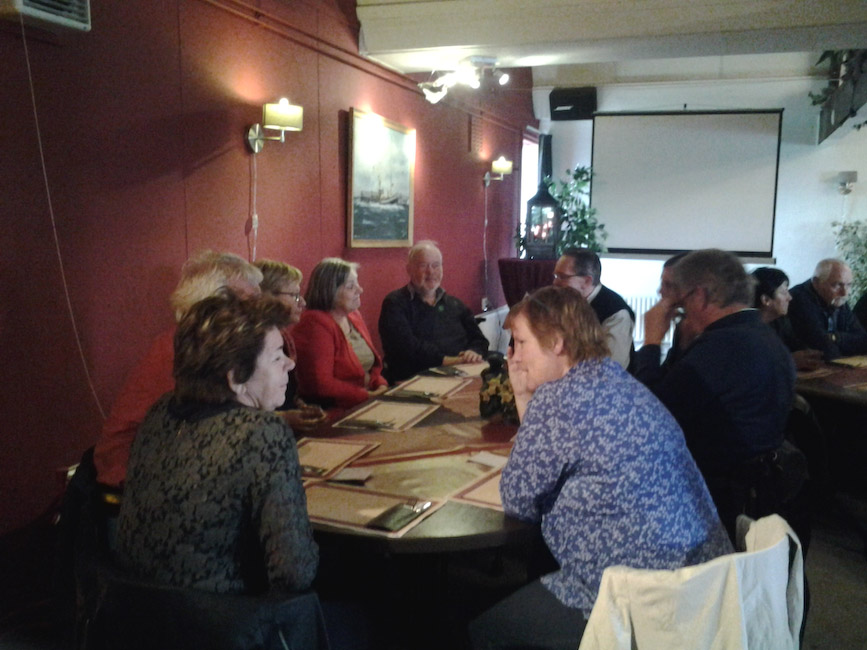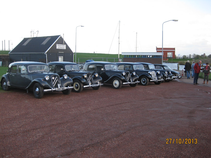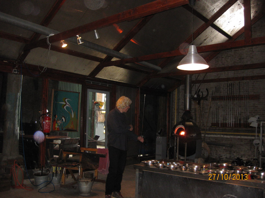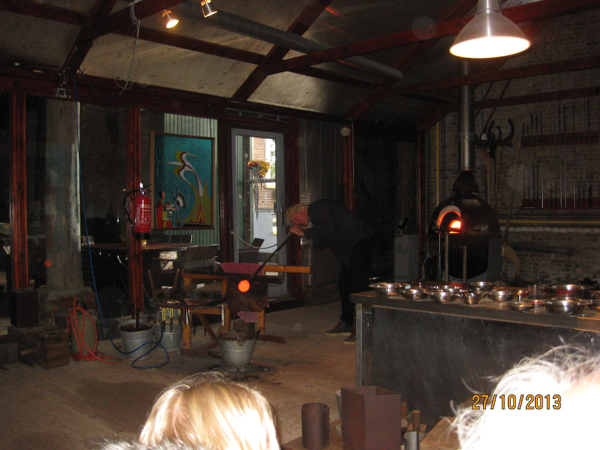 Na de koffie met cake reikte Martha de routebeschrijving uit waarin naast de routeaanduidingen ook informatie was opgenomen van de diverse markante punten onderweg. Om 12.00 uur vertrok de karavaan richting Bad Nieuweschans. Het weer werd naarmate we de Glasblazerij Glasgalerie Old Ambt naderden aanzienlijk beter en een lekker zonnetje bescheen op de parkeerplaats de eens schone Tractions. In de glasblazerij werd eerst de collectie glazen kunst bekeken en daarna werd door de kunstenaars Tanja de Heus en Johan de Vries een demonstratie glasblazen gegeven. Een ambachtelijk beroep dat gezien de vele vragen die werden gesteld zeer in de smaak viel bij de gasten. Rond 15.00 uur vertrok de stoet richting de Waddenkust dwars door het vlakke Groninger kleiland, over de waddendijk en door de eindeloze polders, naar Termunterwijl. Daar werden we verwelkomd in het havenrestaurant waar we na een glaasje werden getrakteerd op en portie heerlijke verse kibbeling. Martha en Daan heel erg bedankt voor het organiseren van deze perfecte rit waarbij velen op plekjes zijn geweest waar ze nog nooit van hadden gehoord. Alle aanwezigen werden uitgenodigd het voorbeeld van Martha en Daan te volgen een ook een rit te organiseren. Het bestuur houdt zich van harte aanbevolen !!