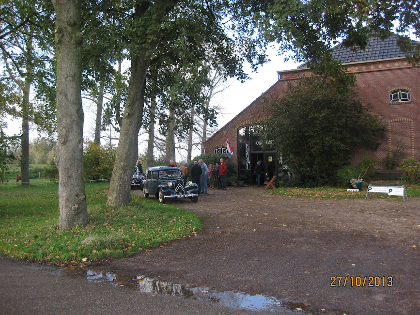 Op zondag 27 oktober viel in de ochtend de regen met bakken uit de hemel. Toch hadden Martha en Daan Zwarberg het voor elkaar gekregen om 18 automobielen met 38 inzittenden naar de Scharmerhoeve in Scharmer te krijgen.