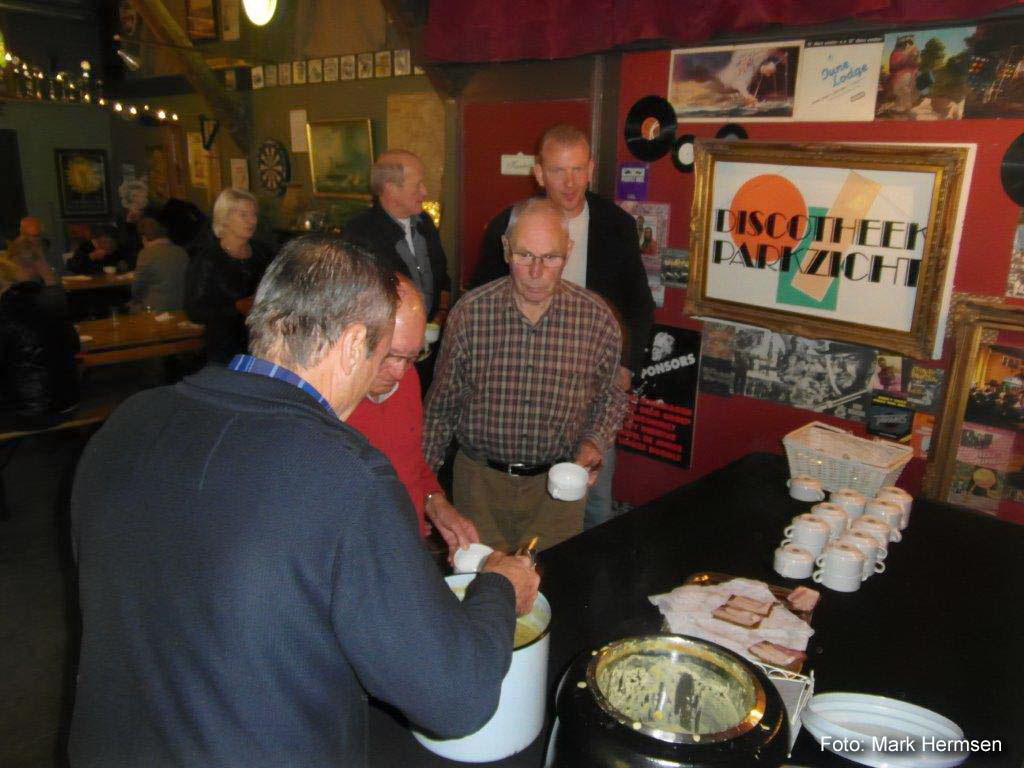 In de deel stond de erwtensoep en roggebrood met spek al te wachten. Nadat iedereen zich tegoed had gedaan aan de heerlijke erwtensoep bedankte de voorzitter de beide ritmeesters Tom en Yme.