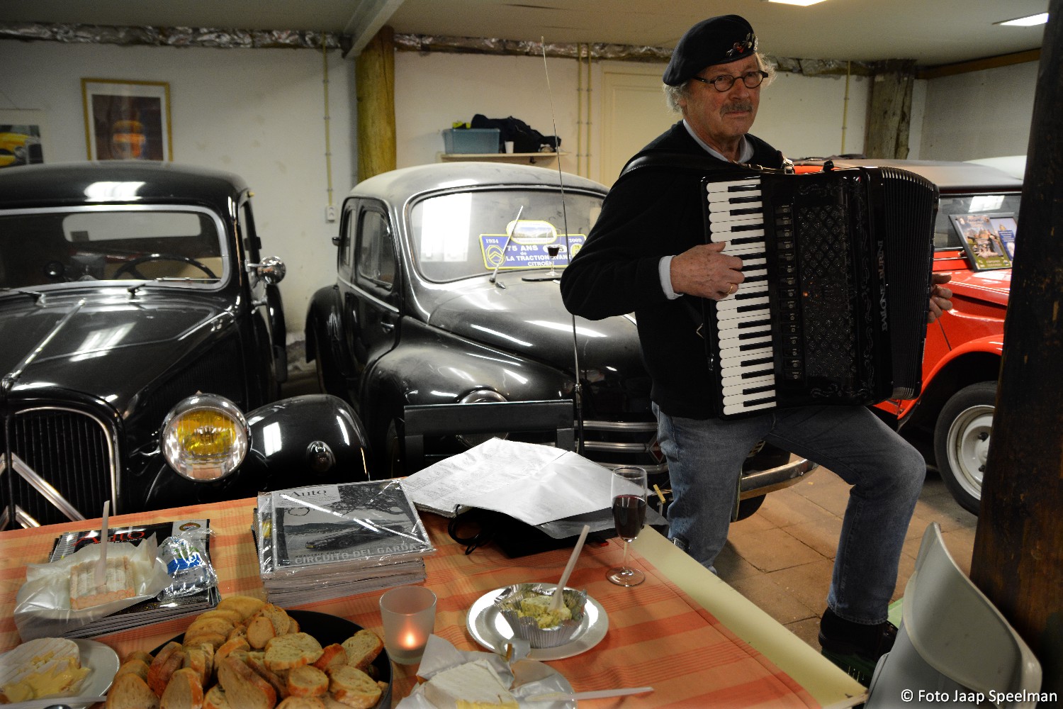 Of de mannen nu kwamen voor de tecnische uitleg over de stuurinrichting door Mark en Gerrit, of voor de beaujolais met lekker hapjes of voor de welklinkende accordeonklanken van Luit Beenen zal wel een raadsel blijven. Maar in de garage was het in ieder geval goed toeven voor iedereen die houdt om in franse sferen te discussiëren over de mooie techniek van onze oude dames. Vanaf deze plaats willen we Gerrit bedanken voor zijn gastvrijheid en Mark voor de interessante uitleg van de stuurinrichting van onze Tractions. Chapeau!!