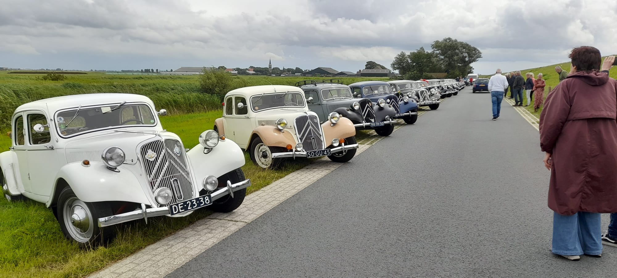 Op zondag 7 juli waren we vanaf 12:00 uur welkom bij de familie Feenstra in Achlum. We werden ontvangen met koffie en heerlijke taart die speciaal gemaakt waren door de moeder van Stefan. Er waren 20 Tractions aanwezig en 49 personen. Op verzoek van Stefan en Grada Feenstra was de uitnodiging voor deze rit ook gedeeld met de afdeling Amsterdam. Dat was een prachtig initiatief. Hierdoor waren er 6 equipes extra!! Wat een gezelligheid. Leuk om elkaar zo te ontmoeten en el-kaars auto's te bewonderen.